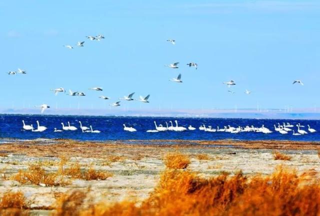 世界上共有8条重要的候鸟迁徙通道,其中中国有3条,赤峰市克什克腾旗达里诺尔湖位于“东亚—澳大利亚”水鸟迁徙路线,是东北亚最重要的候鸟集散地之一。每年秋季,来自西伯利亚和蒙古高原的天鹅开始在达里诺尔湖集结,10月中旬达到集群最高峰。天鹅在达里诺尔秋季停留时间大约是70天,11月下旬湖面封冻后全部迁走。