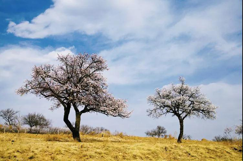 在很多人的印象中,北方的花会“落后”于南方。然而那遍布宁城大地的杏花树,总会在春天如约开放,一团一团,一簇一簇,密密匝匝,散落在旷野和山腰。