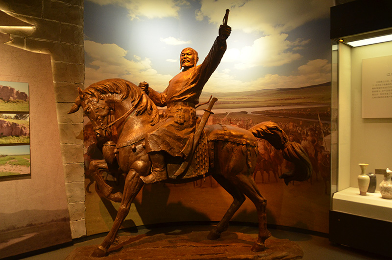 “契丹王朝”展厅,立足于我旗的地域文化特点,以契丹的祖源、草原第一都、祖陵祖州、澶渊之盟后与宋朝的关系,以及契丹族四时捺钵作为重点阐述内容,展示契丹民族从兴起到逐渐发展壮大,直至成为纵横欧亚草原,影响中国乃至世界历史的历程,阐释绚丽多彩的辽文化是契丹族与汉族及其他各民族相互交流和吸收的成果,同时探索中国北方民族的起源与发展,以及对中国统一的、多民族国家发展演变的重要影响。